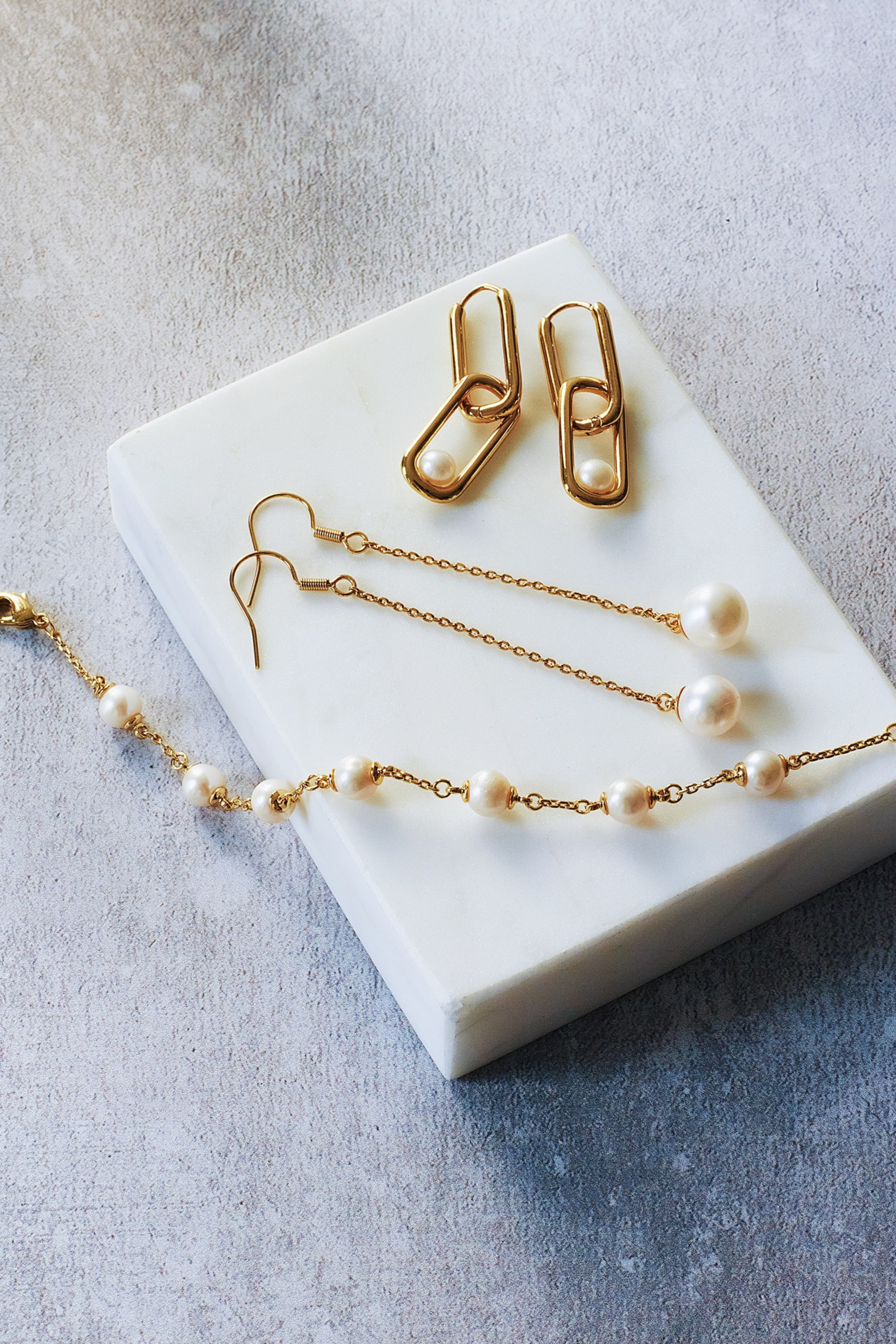 18K Gold-Filled 2-in-1 Paperclip Pearl Earrings